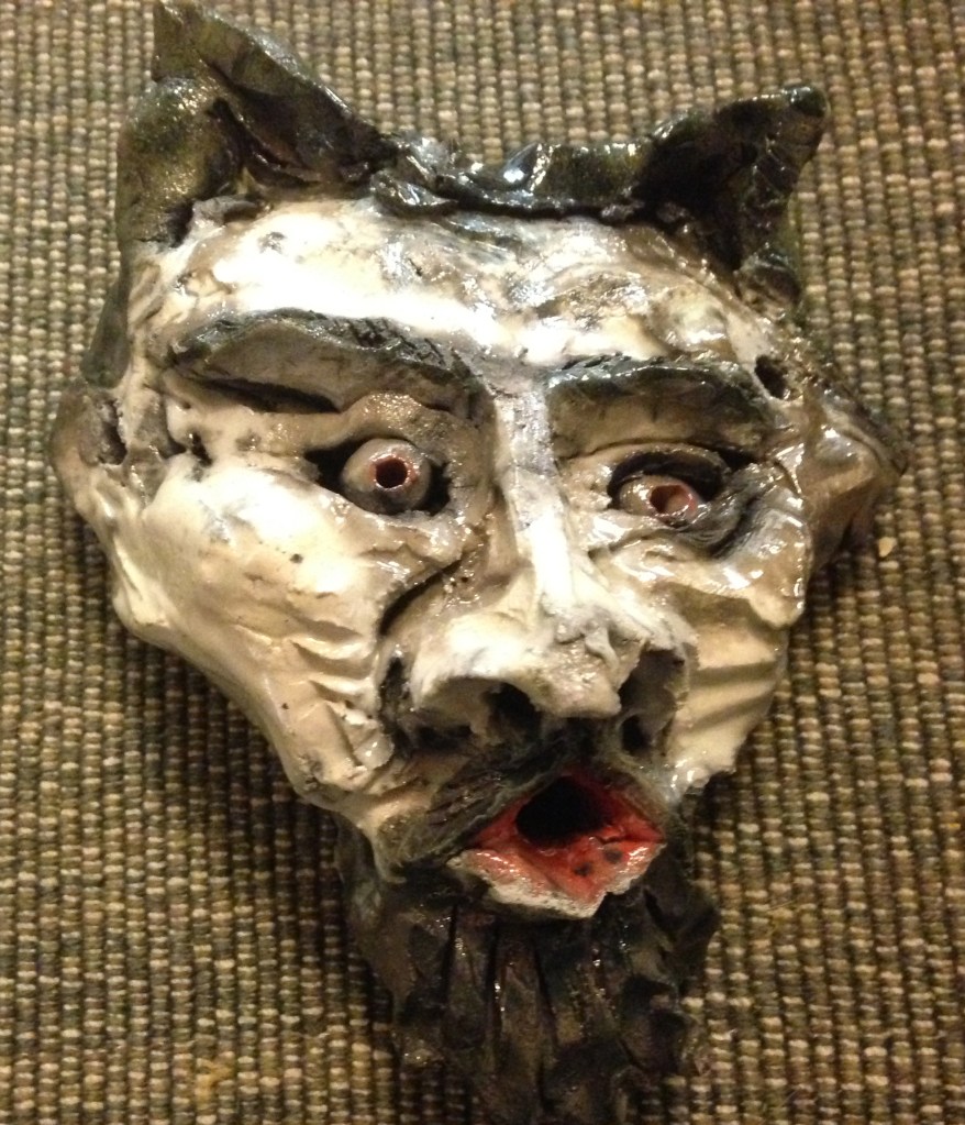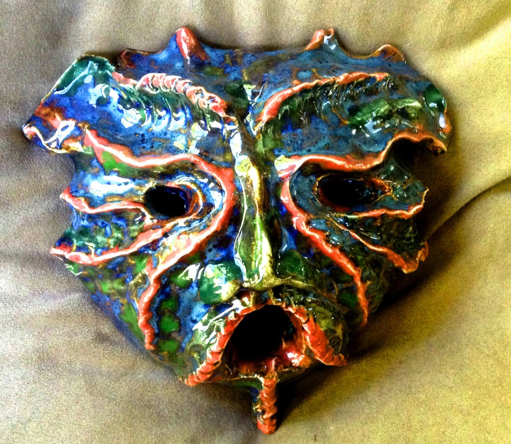 Masks are on everyone’s mind these days. I thought I would post a series of mask design ideas from my old ceramic days. I think these could be transferred to fabric patterns and printed. Since Trump has made monkey’s out of the whole country, I thought I’d start with this. (and really, nothing stops virus transmission like a quarter inch thickness of ceramic!) All you need is some added weather stripping and caulking compound to make a breathless seal….Experts are working on this and we will have a solution in a year or two…I hope…I guess we’ll see…