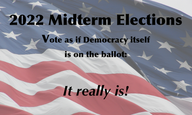 So, I sincerely hope that all those who are eligible to vote will step up and take that easy step to protect democracy—vote! Democracy really is on the ballot. If you are new to politics, vote a straight party ticket for the Democrats. They may not have all the answers, but they are not anti-democratic election-deniers or insurrectionists.